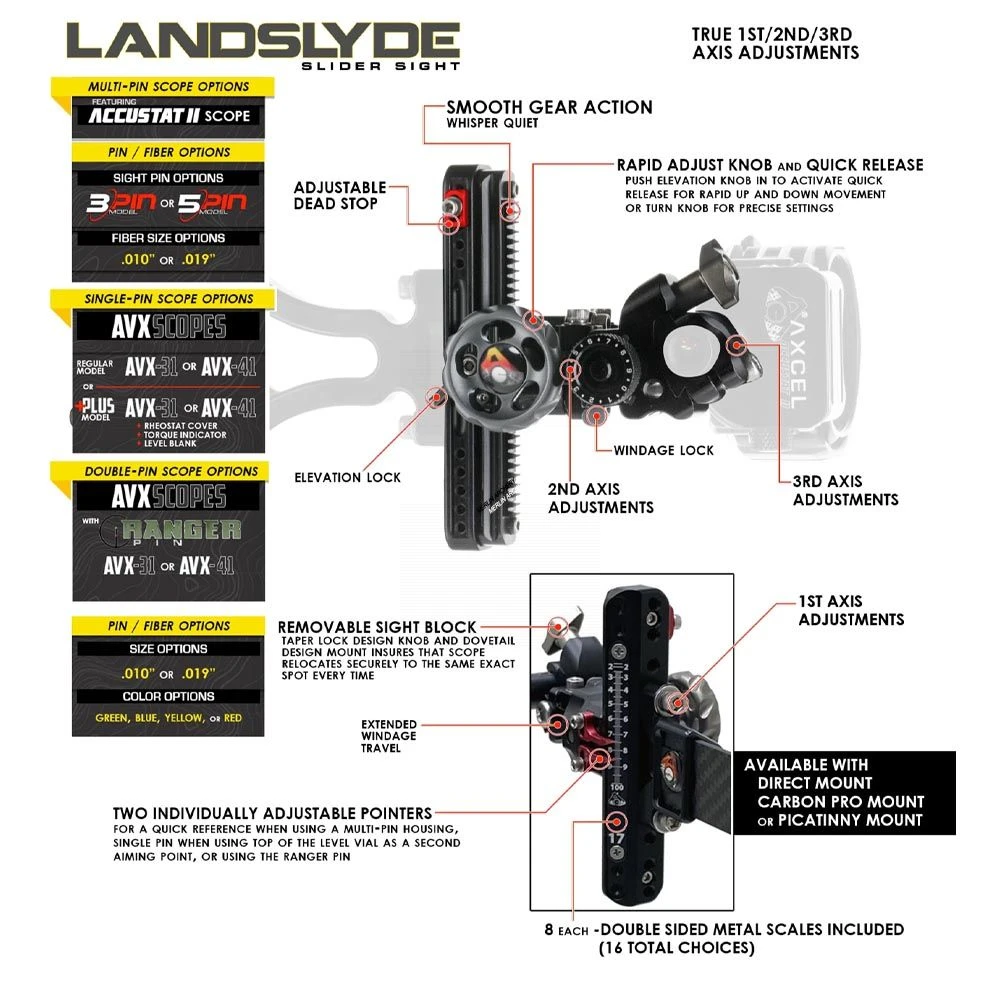 - The AXCEL® Landslyde Slider Sight is packed with features that make it the perfect hunting sight!