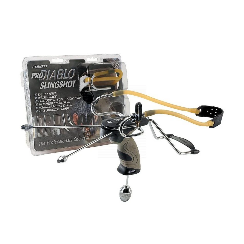 Upgrade to professional status. The three-piece stabilizer and adjustable sight on the Pro Diablo make this Barnett’s most advanced slingshot available.