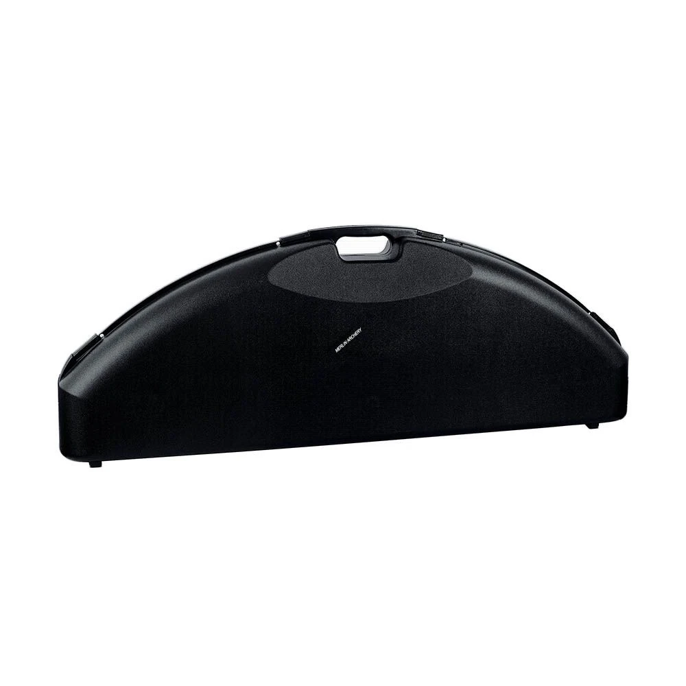 Hard plastic case for compound bow including arrow compartment in the top lid.